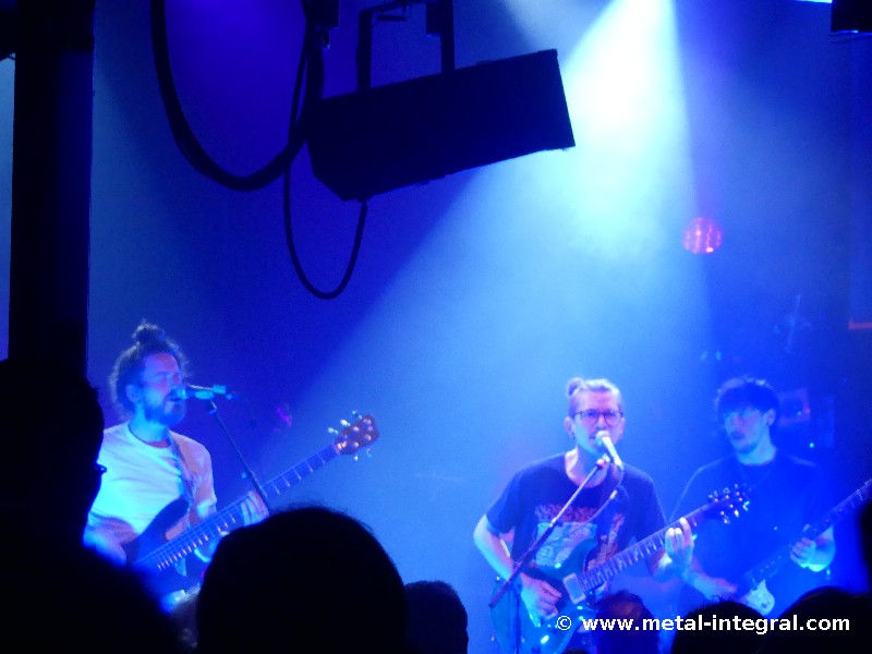 C'est maintenant au tour de GAZPACHO d'investir la scène. Leur nom, plutôt singulier pour un groupe scandinave, reflète, selon eux, le mélange un peu improbable de plusieurs sensibilités musicale au sein du groupe. Au contraire des français, les norvégiens ont une longue carrière musicale derrière eux, débutée en 1996, et forte de 12 albums. J'ai lu qu'ils étaient même considérés comme un groupe culte dans le milieu du néo prog. Leur dernier album, Magic 8 ball, est sorti en 2025 et ils se sont donc bien évidemment appuyés sur celui-ci pour délivrer leur prestation. L'ambiance générale du concert est plus apaisée que celle des français. La voix de leur chanteur, quoi que douce et chaleureuse, est moins élastique et je n'aurais pas droit à de grandes envolées dans les aigus. Il y a l'intervention du violon sur certains titres, qui donne une touche mélancolique très appréciable. Pour ma part, j'ai particulièrement apprécié la chanson The Walk, un morceau tiré de l'album Tick Tock sorti en 2009. Le titre de pratiquement un quart d'heure est scindé en deux parties. Le début, en mid-tempo, est magnifiquement chanté, avec une mélodie juste sublime. Il y a un long pont planant, avant que le titre ne reparte en durcissant légèrement le ton. D'un point de vue général, j'ai trouvé que les chansons étaient moins impactantes que celles de HAMASAARI. Il est d'ailleurs à noter que dès que les morceaux prenaient de l'ampleur et accéléraient le rythme, il y avait une réponse immédiate du public, d'ordinaire calme, un peu comme s'il n'attendait que ça ! Voici donc une belle soirée, placée sous le signe de l'apaisement, ce qui fait plutôt du bien dans ces temps troublés.