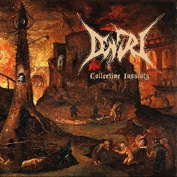 Je vais être honnête, je trouve cela très étrange de se lancer dans un one man band, spécifiquement en matière de thrash metal, un genre éminemment taillé pour la scène. Cependant, passée la petite frustration de se dire que les chances sont bien minces d’apprécier ce mini-album en live je crois qu’il ne faut pas se priver du plaisir qu’il procure en tant que tel. D’ailleurs, si j’ai décidé de le chroniquer parmi l’avalanche de nouveautés, c’est bien qu’il y un truc qui m’a gaulé l’oreille. En décembre 2021, DENFIRE nous avait déjà gratifié d’un excellent premier EP de trois titres, Riding The Winds Of Death et le voici de retour un an plus tard avec trois nouveaux brulots : Collective Insanity. J’ai une petite préférence pour ce second EP car j’ai senti un progrès dans la production qui délivre un son très clair et puissant mais je vous invite vivement à vous pencher aussi sur le premier opus. Musicalement, DENFIRE joue essentiellement sur le côté thrash de la force, mais ne crache pas sur quelques ambiances plus ténébreuses. Les standards du thrash traditionnel sont respectés : des paroles balancées à coups de vers courts et qui claquent, une ribambelle de riffs très tranchants qui s’enchaînent et s’articulent intelligemment. Toutes les figures de style du genre sont assimilées et maitrisées. Soyons clair : DENFIRE est un maître riffeur ! Lone Wolf rentre dans le lard directement. L’album commence par un coup de poing. Les amateurs de petites ambiances sonores introductives de type « glas, pluie et tonnerre, échos de champ de bataille, grillons et bruit du vent le soir dans les branches de sassafras » seront déçus mais je salue cette volonté d’aller à l’essentiel qui est une constante sur l’album. Concernant les paroles, je crois discerner une parabole fantastique incitant l’humanité à se reprendre en main d’urgence. Ce n’est pas de l’hyper-speed mais la rythmique est serrée. Si vous avez besoin d’une référence, je ressens sur ce morceau une belle ambiance de type VENOM sur la ligne de chant, conjuguée à un lumineux travail sur les guitares. La seconde plage, Awakening, démarre avec un riffage assez ample et une mélodie rampante. L’accent n’est pas mis sur la vitesse mais sur la lourdeur. A partir de la seconde minute le titre devient plus thrashy. Dans les paroles il est de nouveau question de reprendre les choses en main mais cette fois-ci de manière individuelle et non plus collectivement. Je me trompe peut-être, mais j’ai l’impression que ce morceau explique les raisons pour lesquelles DENFIRE a tourné la page s’engage dans un projet solo. Ah ! la chanson-titre Collective Insanity clôture le mini-album avec excellence. C’est vraiment mon préféré des trois et notamment en raison de l’accélération consécutive à l’introduction qui cloue sur place. Voilà, le type de riff aussi speed que puissant qui te balance plusieurs G dans la face – un pur délice qui me ramène à la furie du premier LP de WHIPLASH ! Les thrashers vivent pour l’adrénaline qu’apporte ce genre de pièces. Allez, je me le réécoute en boucle celui-ci ! Bien sûr, trois titres c’est court mais je me console en additionnant les deux EP et – à bon entendeur – je n’aurais rien contre une sortie CD cumulant ces deux œuvres. Amateurs de thrash classique, si vous aimez sentir un travail mené avec sincérité et efficacité, allez de ce pas écouter DENFIRE ! *** Extrait de Collective Insanity, le morceau-titre : Cliquez ici !... click and destroy !