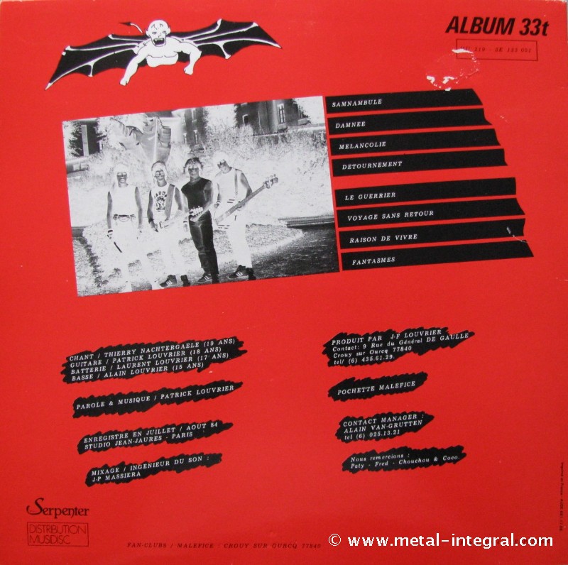 PATRICK = Un concert oui, mais avec un délai de 3 mois pour y arranger les titres très Heavy Metal avec le son MALEFICE ! Une réédition CD ? Non, cet album a vécu, et n'est plus actuel, il ne représente plus aucun membre du groupe (bien qu'il se vende toujours, et pas que par mes soins).
