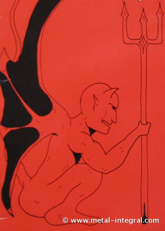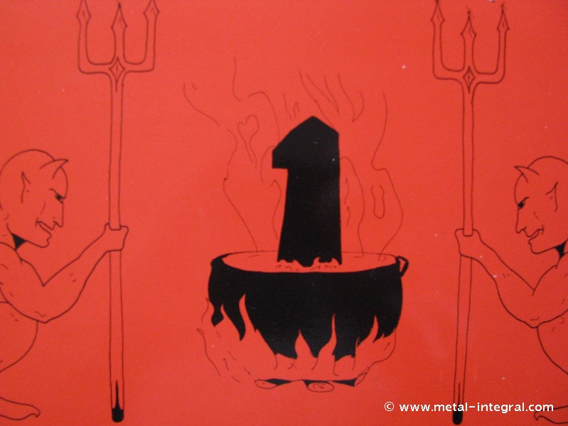PATRICK = Ha cette pochette !!!!! Nous l'avons réalisé nous-mêmes, un dessin qui était au départ beaucoup plus grand qu'une pochette de 33t, puis qui a été rétrécis pour avoir des traits plus précis, la couleur rouge dominante est un choix tape a l'oeil voulu, pour bien voir l'album dans les bacs. Sur le verso la photo en négatif est complètement un choix du groupe, nous voulions arriver en concert sans que personne ne soit au courant de qui nous étions, et pouvoir être tranquille le reste du temps au cas ou... C'est bien le chiffre 1 dans la marmite!