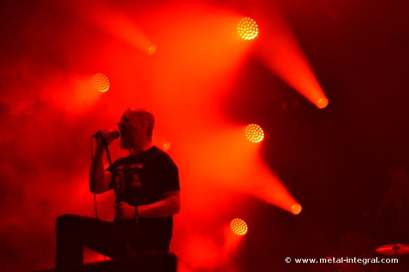 WIEGEDOOD Après BRUTUS, voici un autre trio du plat pays mais officiant dans un style plus sombre. Pendant 50 minutes, il nous a transporté dans son post black métal aux mélodies parfois hypnotiques. Concert principalement recentré sur leur dernier méfait There’s Always Blood At The End Of The Road. Le chanteur guitariste Levy SEYNAEVE se permet, au détour d’une chanson, un chant incantatoire des lamas tibétains… Même s'il manque une basse, le coup de cœur du dimanche !