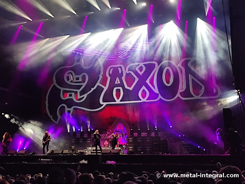SAXON Je suis persuadé que les plus jeunes vont quitter la mainstage après METALLICA, pari gagné, nous pouvons donc approcher du bord de la scène très facilement pour écouter la légende SAXON qui clôture la soirée. Nous allons avoir de la chance car les anglais vont proposer un concert sublime. Biff BIFFORD, presque 50 ans de carrière et 73 ans chante admirablement bien, quel est son secret ? Aucun hit du groupe ne manque à l’affiche, mes préférences allant pour Heavy Metal Thunder et Dallas 1PM de Strong Arm Of The Law (1980). L’aigle métallique d’époque bien retro est de sortie, les visuels sont sobres mais classe, de même que les lights très justes. Brian TATLER, fondateur de DIAMOND HEAD, lui aussi un groupe de la N.W.O.B.H.M. comme SAXON apporte son expérience et forme une belle paire de guitaristes avec Doug SCARRATT. Je souligne aussi la présence de Nigel GLOCKLER derrière les fûts présent dans le groupe depuis presque le début. Super concert dans une excellente ambiance. Biff nous gratifie de rappels en cadeaux avec Crusader et Princess Of The Night. Depuis la première fois où je les ai vu (2000), le groupe n’a pas baissé en qualité mais il ne demeure pas éternel… Il fallait donc absolument les voir !