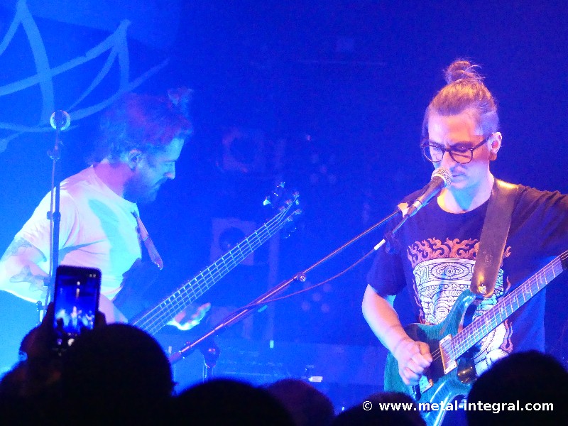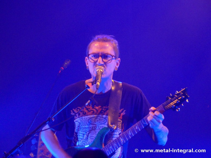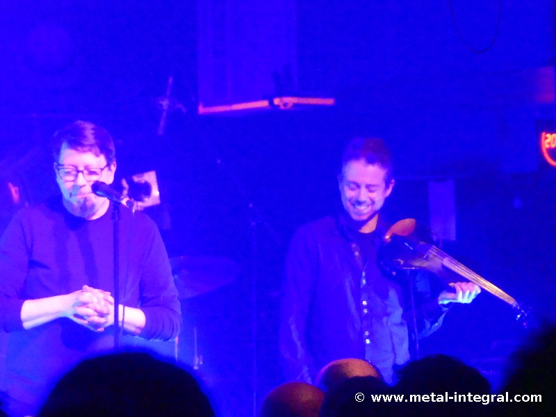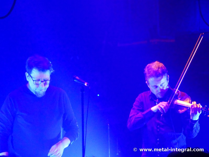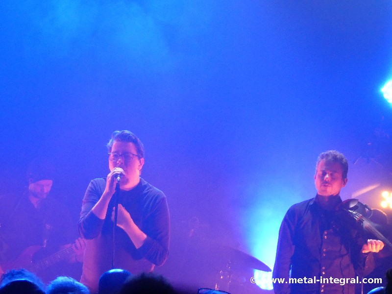 C'est maintenant au tour de GAZPACHO d'investir la scène. Leur nom, plutôt singulier pour un groupe scandinave, reflète, selon eux, le mélange un peu improbable de plusieurs sensibilités musicale au sein du groupe. Au contraire des français, les norvégiens ont une longue carrière musicale derrière eux, débutée en 1996, et forte de 12 albums. J'ai lu qu'ils étaient même considérés comme un groupe culte dans le milieu du néo prog. Leur dernier album, Magic 8 ball, est sorti en 2025 et ils se sont donc bien évidemment appuyés sur celui-ci pour délivrer leur prestation. L'ambiance générale du concert est plus apaisée que celle des français. La voix de leur chanteur, quoi que douce et chaleureuse, est moins élastique et je n'aurais pas droit à de grandes envolées dans les aigus. Il y a l'intervention du violon sur certains titres, qui donne une touche mélancolique très appréciable. Pour ma part, j'ai particulièrement apprécié la chanson The Walk, un morceau tiré de l'album Tick Tock sorti en 2009. Le titre de pratiquement un quart d'heure est scindé en deux parties. Le début, en mid-tempo, est magnifiquement chanté, avec une mélodie juste sublime. Il y a un long pont planant, avant que le titre ne reparte en durcissant légèrement le ton. D'un point de vue général, j'ai trouvé que les chansons étaient moins impactantes que celles de HAMASAARI. Il est d'ailleurs à noter que dès que les morceaux prenaient de l'ampleur et accéléraient le rythme, il y avait une réponse immédiate du public, d'ordinaire calme, un peu comme s'il n'attendait que ça ! Voici donc une belle soirée, placée sous le signe de l'apaisement, ce qui fait plutôt du bien dans ces temps troublés.